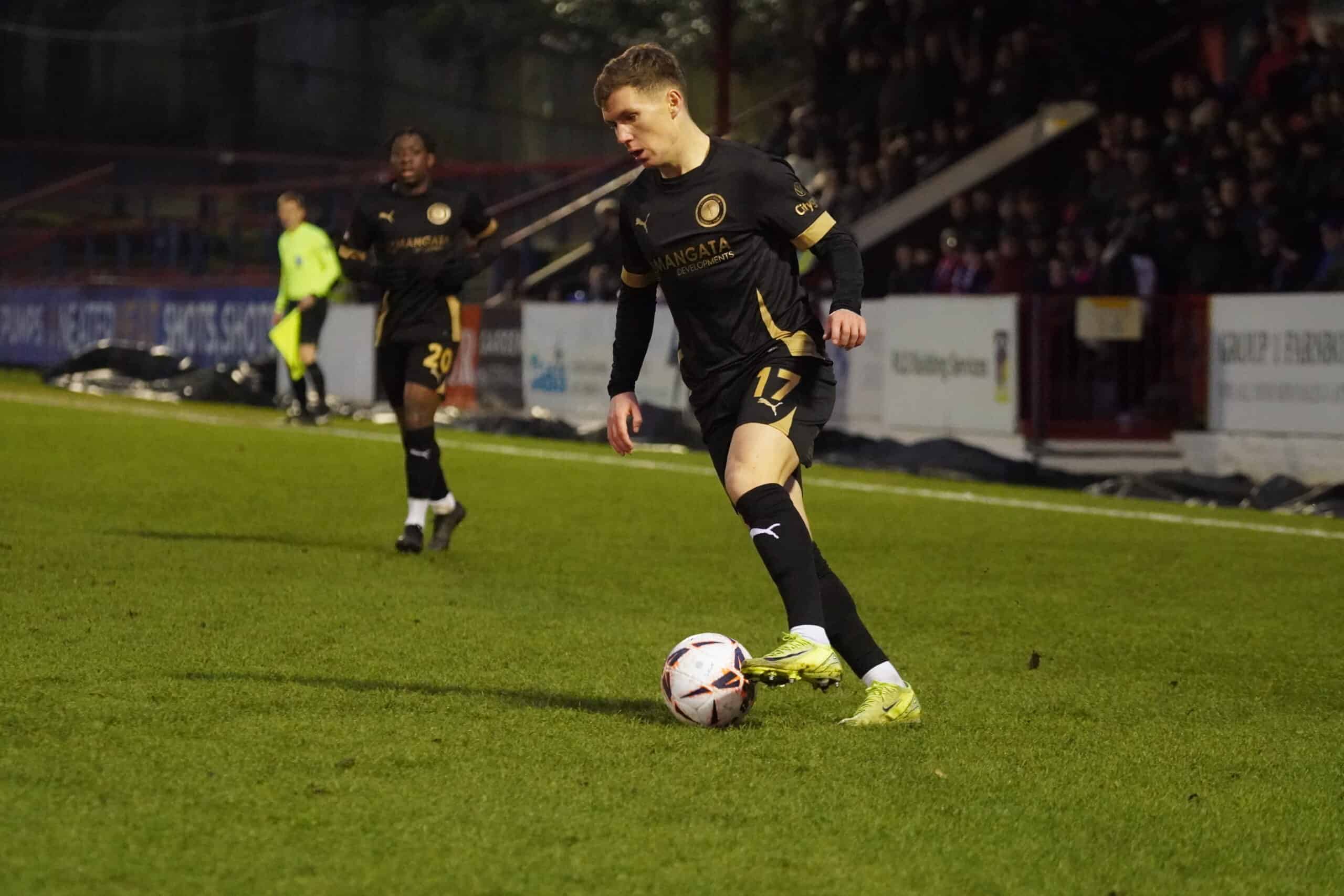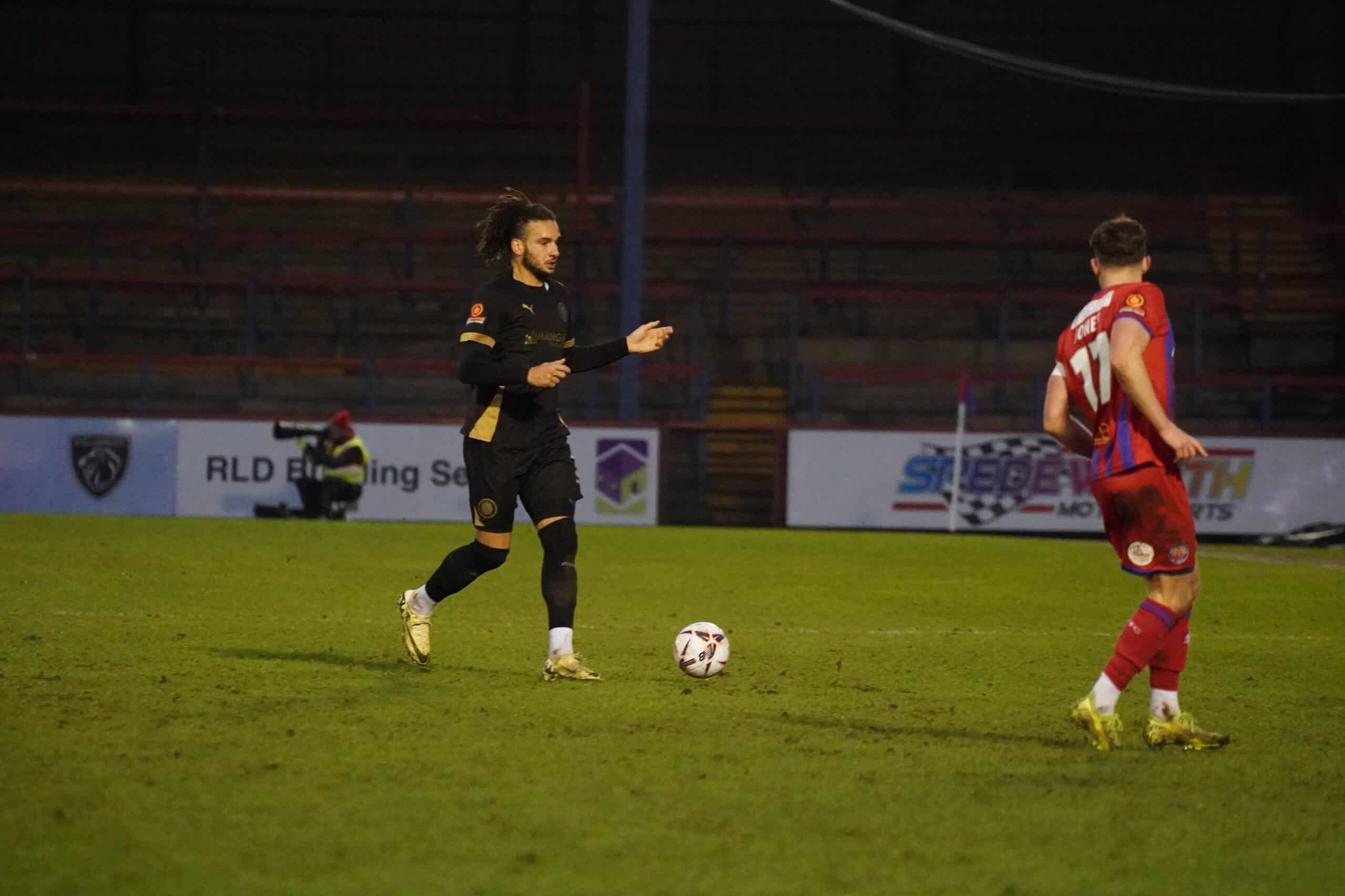 The hosts started quickly and forced an early corner from which Luca Woodhouse headed just wide. Almost immediately, Charlie O’Connell was also off target with a header from another corner. On nine minutes, a cross from Job Benton was very close to being tapped home by Matt Rush, but his weak shot was easily gathered by Shots keeper Marcus Dewhurst. The hosts had a great chance to take the lead four minutes later when Tyler Frost cut inside and fired just wide, with Nathan Ashmore beaten. On 17 minutes, Aaron Jones fired straight at Ashmore for the Shots. Two minutes later, an excellent run and cross from Jones found Jack Barham, who volleyed over the bar.