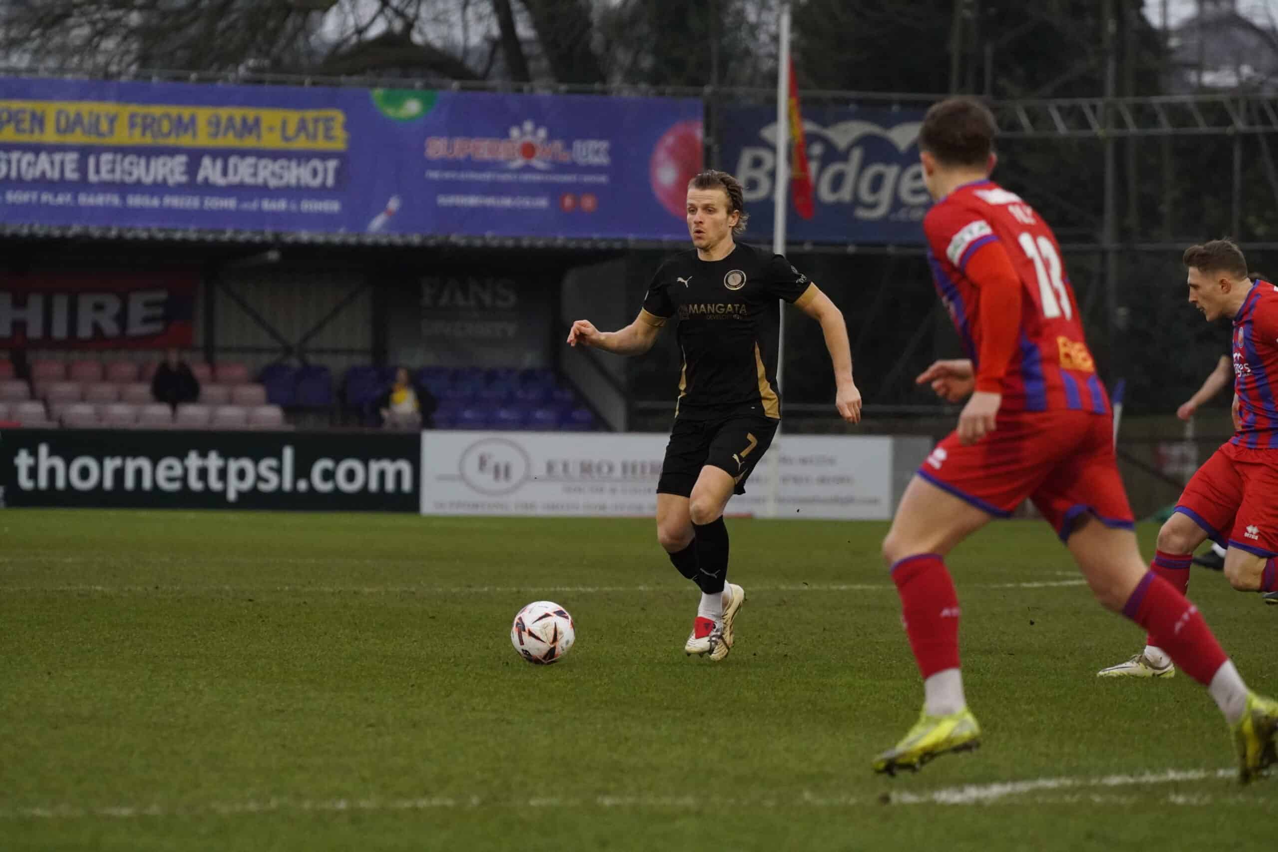 Aldershot continued to apply pressure, and on 24 minutes, Barham’s effort was kicked away by Ashmore after a clever free-kick from Jones. On 33 minutes, Boreham Wood had a rare chance when Tom Whelan fired straight at keeper Dewhurst. The hosts should have taken the lead following some excellent interplay between Barham and James Henry, who then played in Josh Barrett, but Barrett screwed his shot wide. Barrett went close again on 38 minutes but couldn’t keep his shot down.