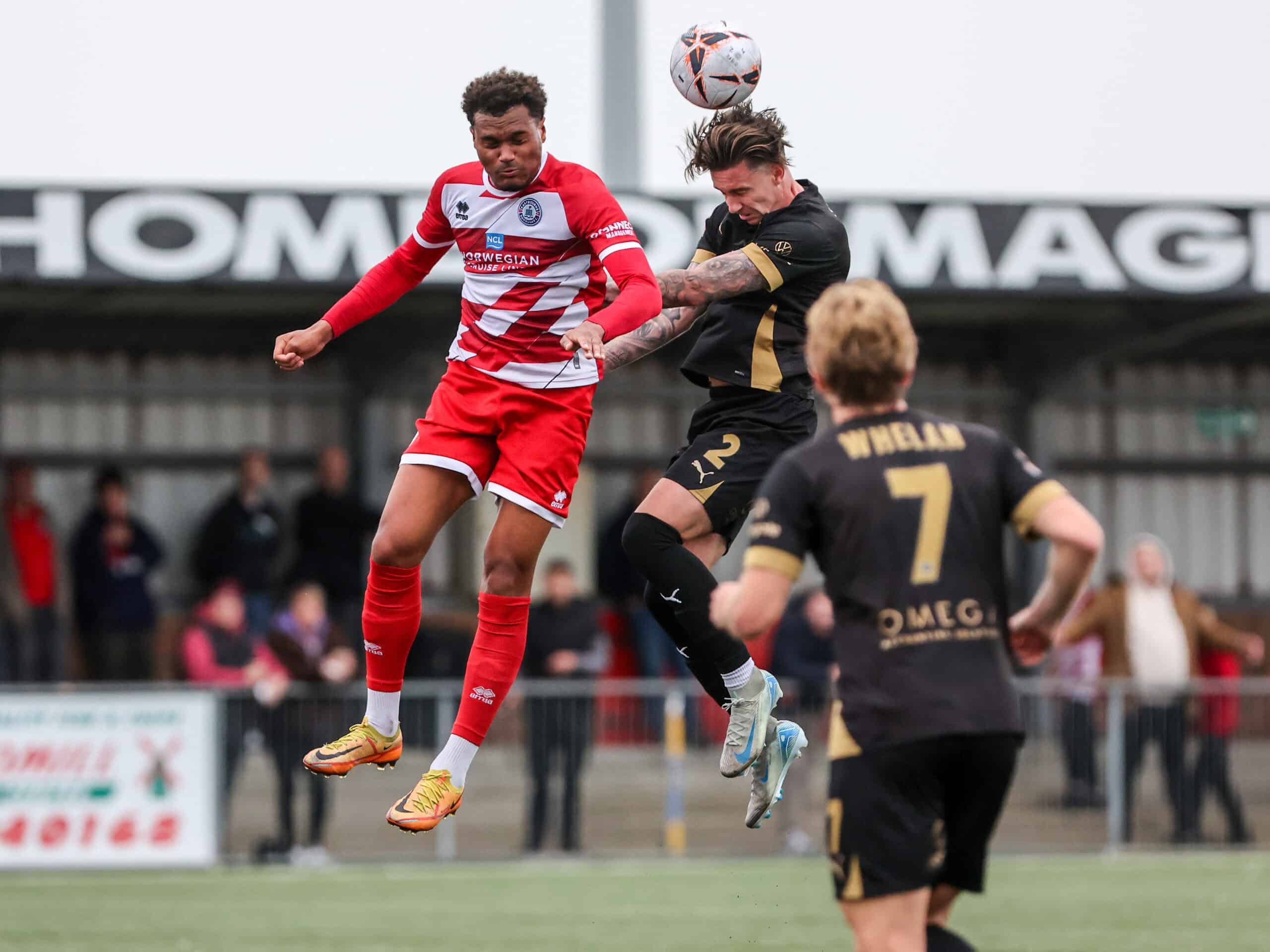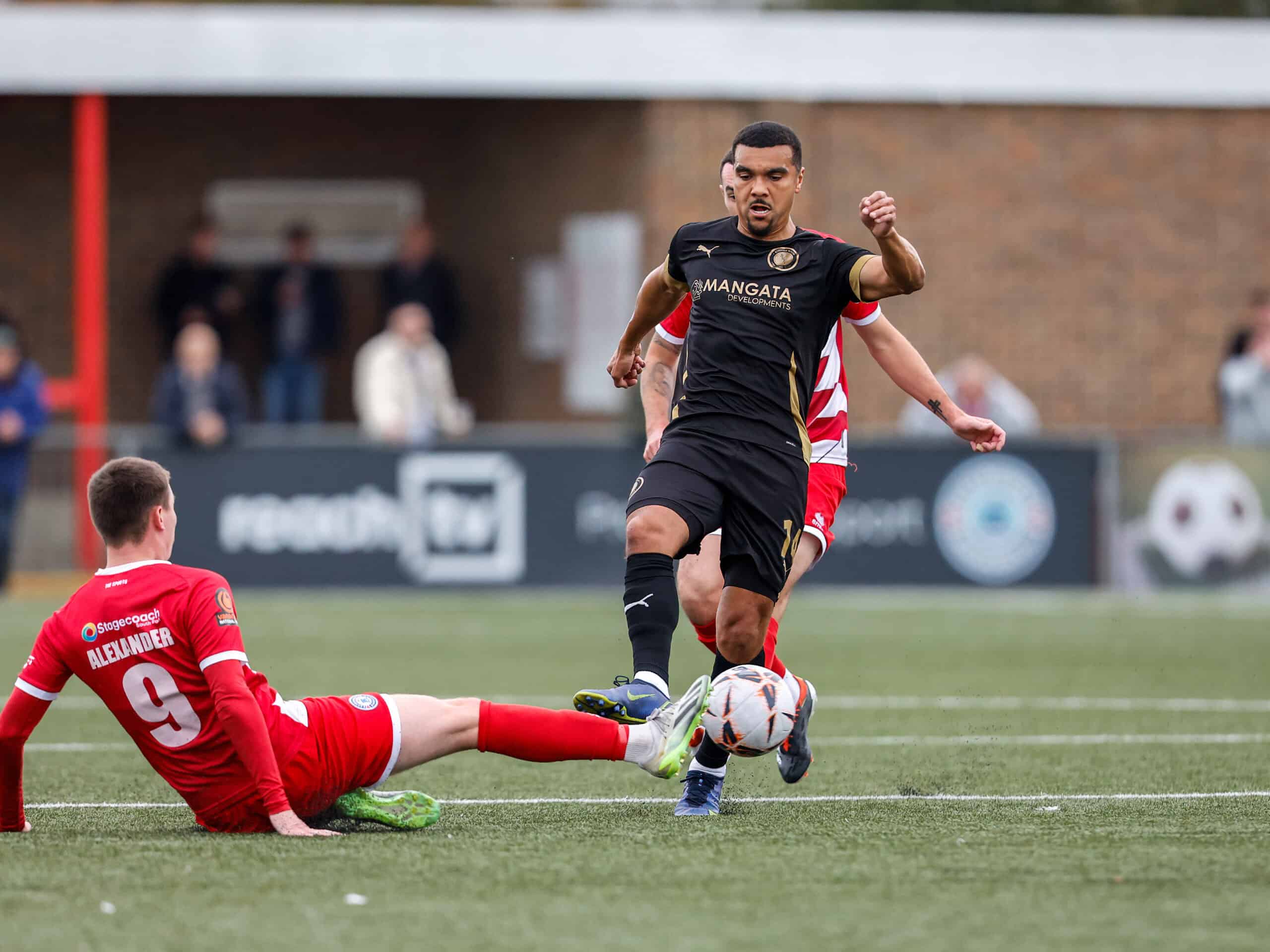 On 21 minutes, a bullet header by Femi Ilesamni crashed off the Sports crossbar with the keeper well beaten. On 34 minutes, Abdul Abdulmalik was dispossessed by Clarke, who went on an excellent run, eventually playing in Alexander, who then forced Nathan Ashmore into a good save. Three minutes later, a Williams free kick sailed over Ashmore’s crossbar. On 39 minutes, Sports keeper Joe Wright brought Kwesi Appiah down in the penalty area, and referee Harry Wager had no hesitation in pointing to the spot. Sousa made no mistake from the spot, sending Wright the wrong way. Two minutes later, Cameron Coxe struck a volley over the bar as Wood looked for a second goal.