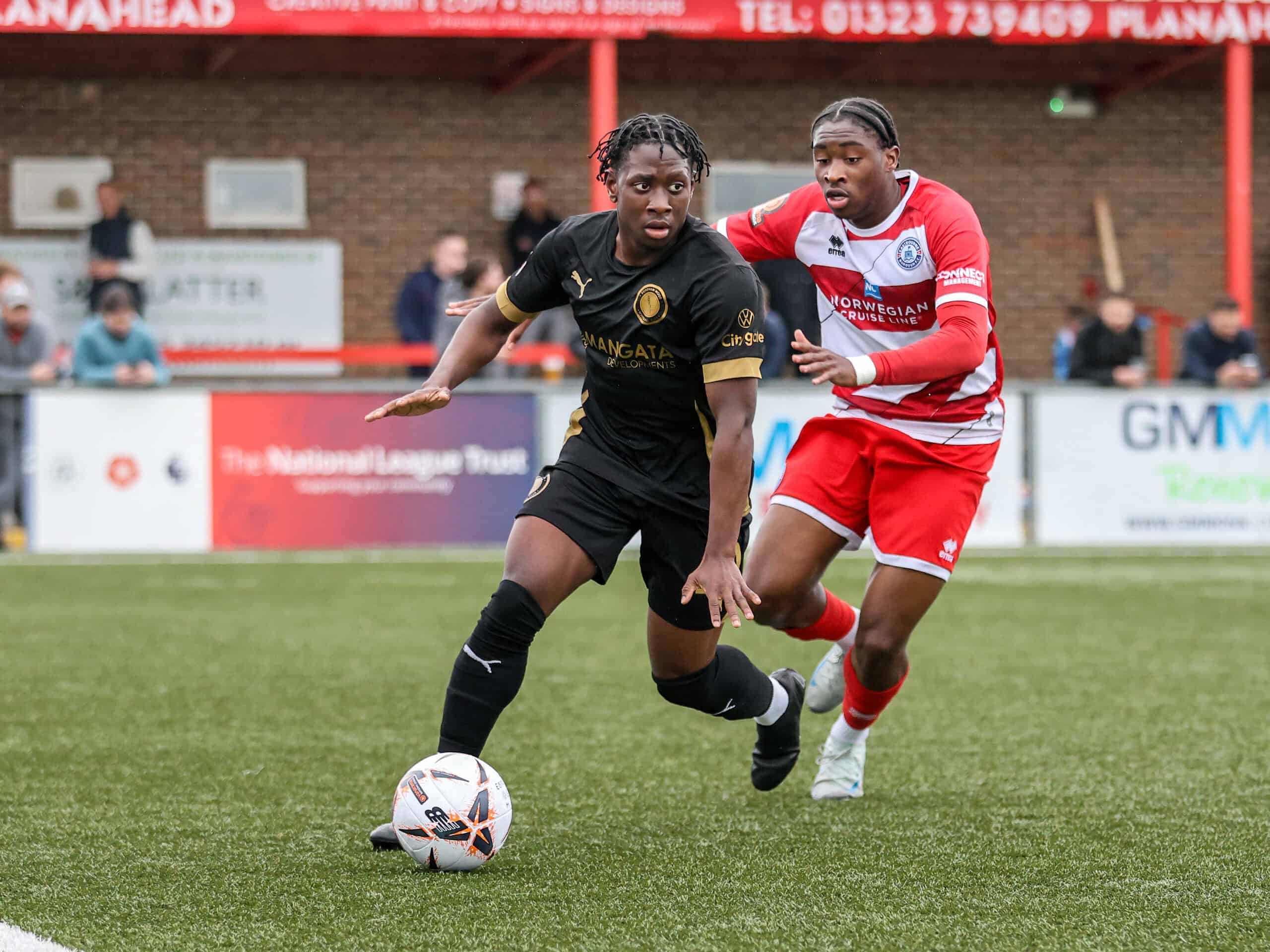 The visitors controlled much of the early possession and could have taken the lead after 10 minutes following some excellent interplay between Shaun Williams, George Alexander, and Dominic Odusanya, which created a chance for Freddie Carter, but he couldn’t keep his shot down. Four minutes later, a delightful pass from Chris Bush picked out Tom Whelan, who controlled it brilliantly before firing over the crossbar. Erico Sousa fired just wide a minute later. Shortly afterward, the Sports should have taken the lead when, after an excellent run down the right by Courtney Clarke, he played the ball into Michael Klass, but with all the time in the world, the Eastbourne forward shot over the bar.