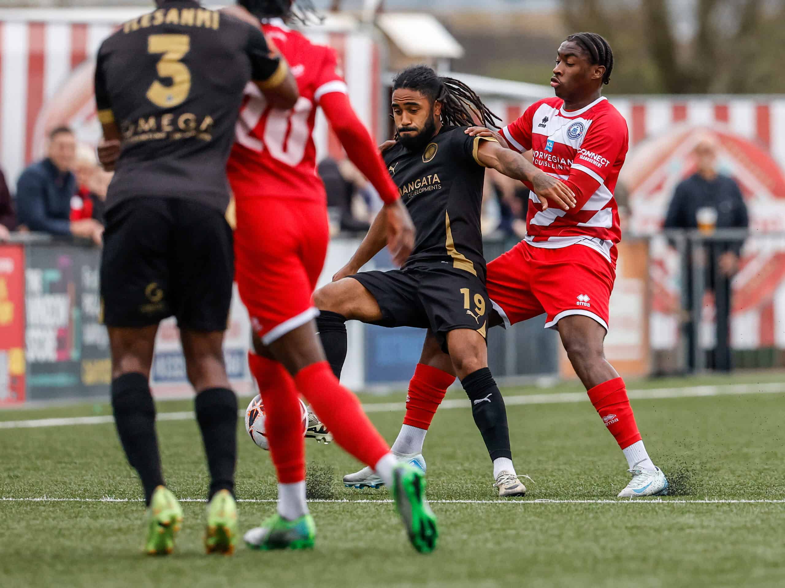 The hosts’ improved second-half performance was rewarded on 74 minutes when they equalised. Odusanya’s free kick was headed on by Diarra into the path of George Alexander, who got a slight touch to divert the ball past Ashmore, with the Wood defence ball-watching. This goal knocked the stuffing out of Luke Garrard’s team, and 10 minutes later, the Sports took the lead. Sesay made a good run before playing the ball to Fin Ballard-McBride, who took it past two Wood defenders and finished well into the top corner. Unfortunately, Boreham Wood offered very little after that and didn’t look like coming back into the match.