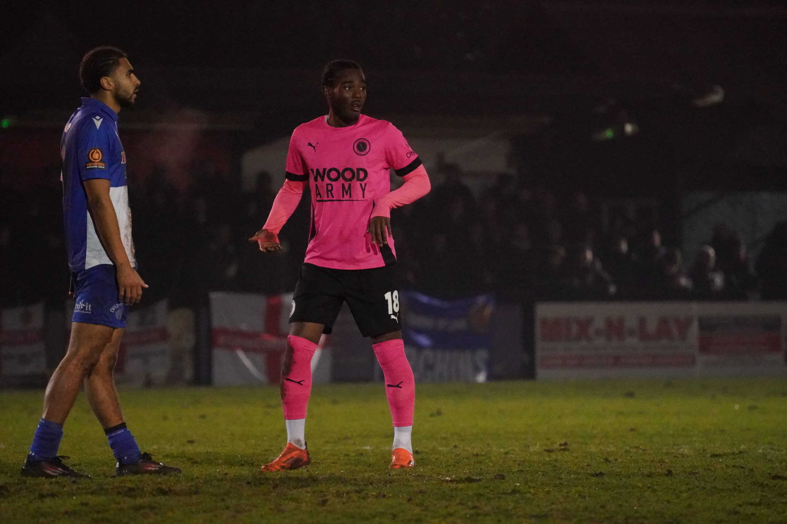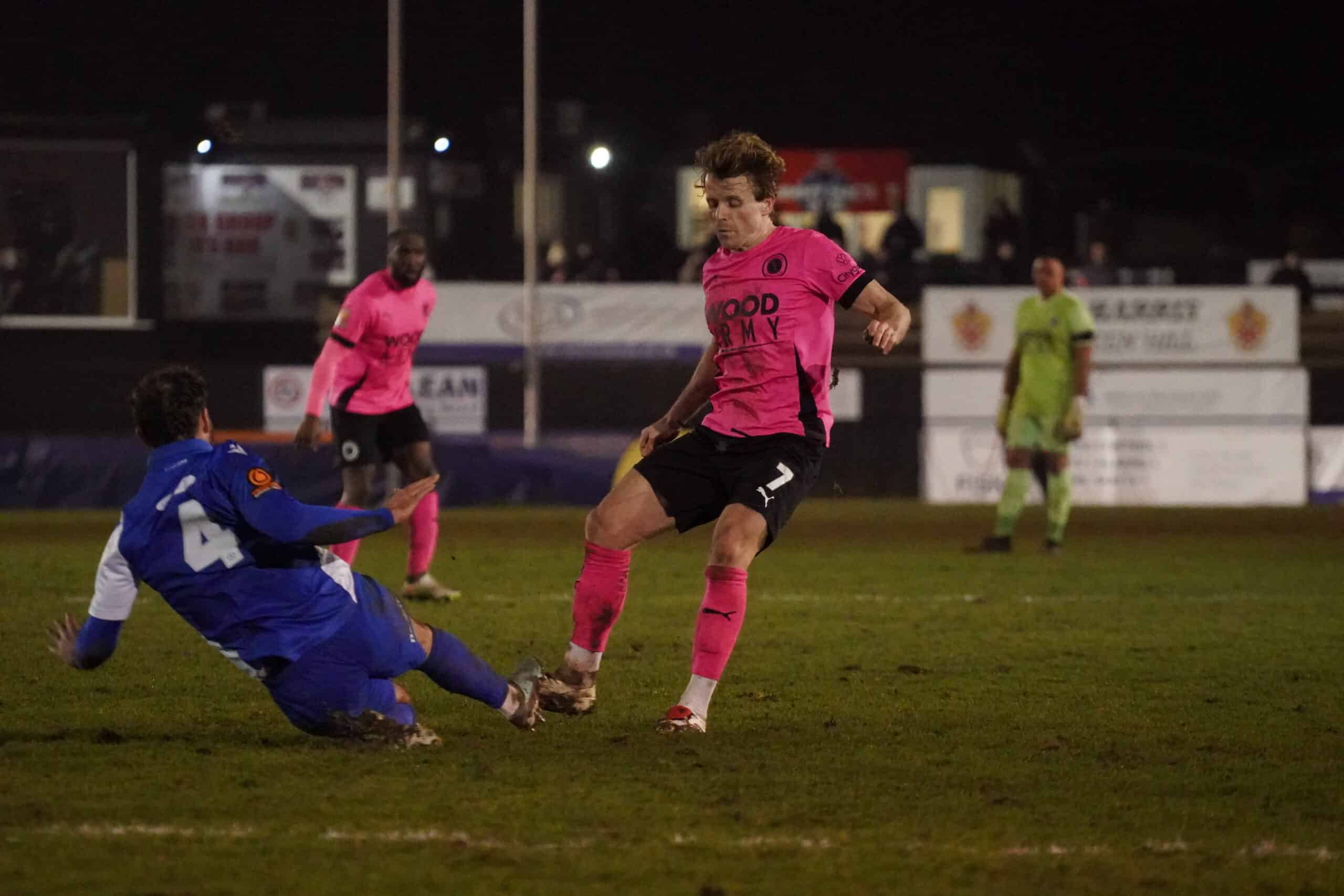 Boreham Wood were much better after the break as they realised that the pitch wasn’t suited to playing the ball to feet. Five minutes after the restart, a ball over the top to Rush gave him an opportunity, but Terry was once again equal to it. Two minutes later, Tom Whelan crossed the ball into Rush, but Nathan Betram-Cooper did well to block his shot. On 56 minutes, Sagaf fired into the side netting for Wood. Luke Garrard shuffled the pack and brought on both Erico Sousa and Junior Dixon, who did add something to Boreham Wood’s attacking play.