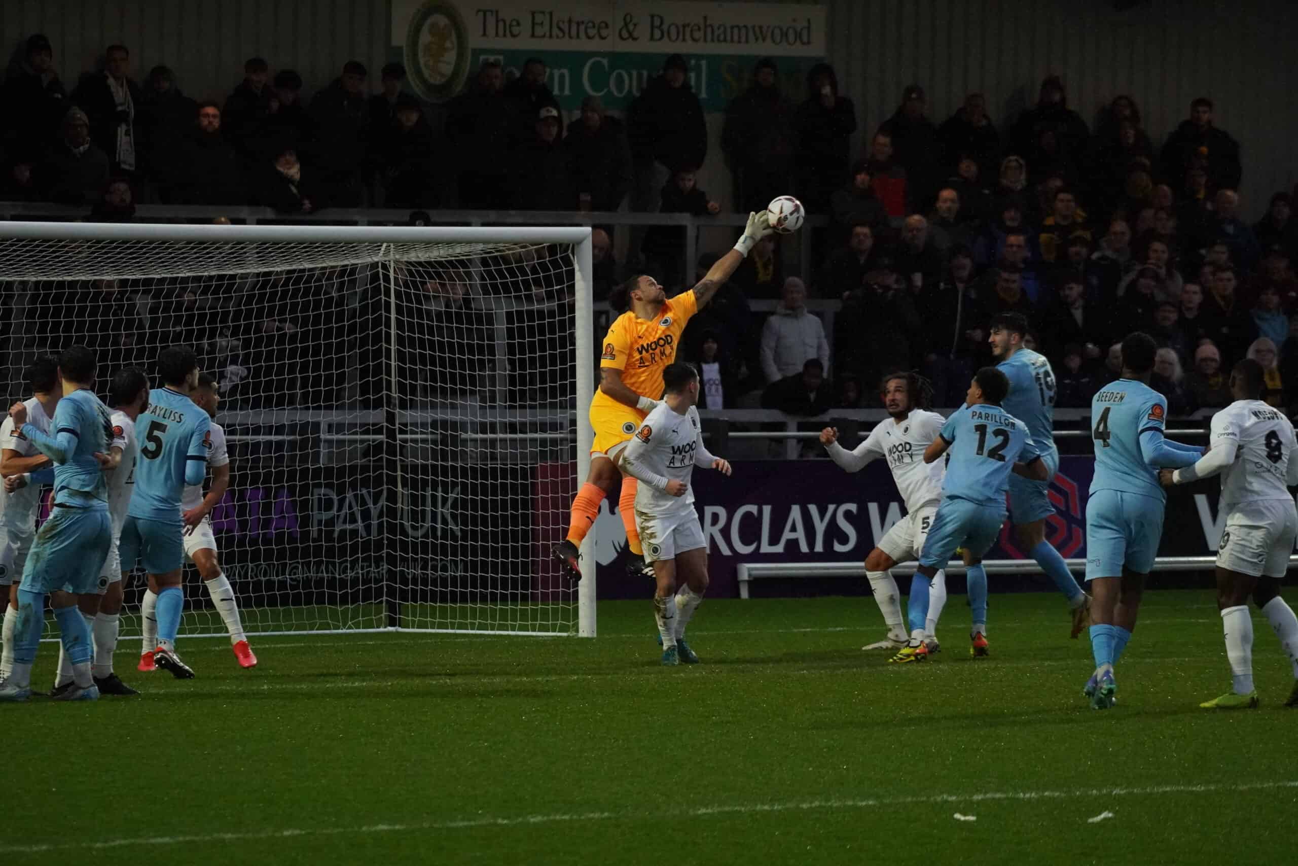 Wood were in complete control in the second half. Eight minutes after the restart, Ndlovu flicked on a Whelan corner into the path of Hare, who, despite not getting a good connection, saw the ball roll towards the net before it was cleared off the line. A double substitution soon afterwards really put Wood in control when Abdul Abdulmalik and Matt Rush were introduced. On 65 minutes, Abdulmalik found Appiah, who finished well for his second to put Boreham Wood back in the lead. Three minutes later, Rush rounded the goalkeeper and finished in fine style to make it three.