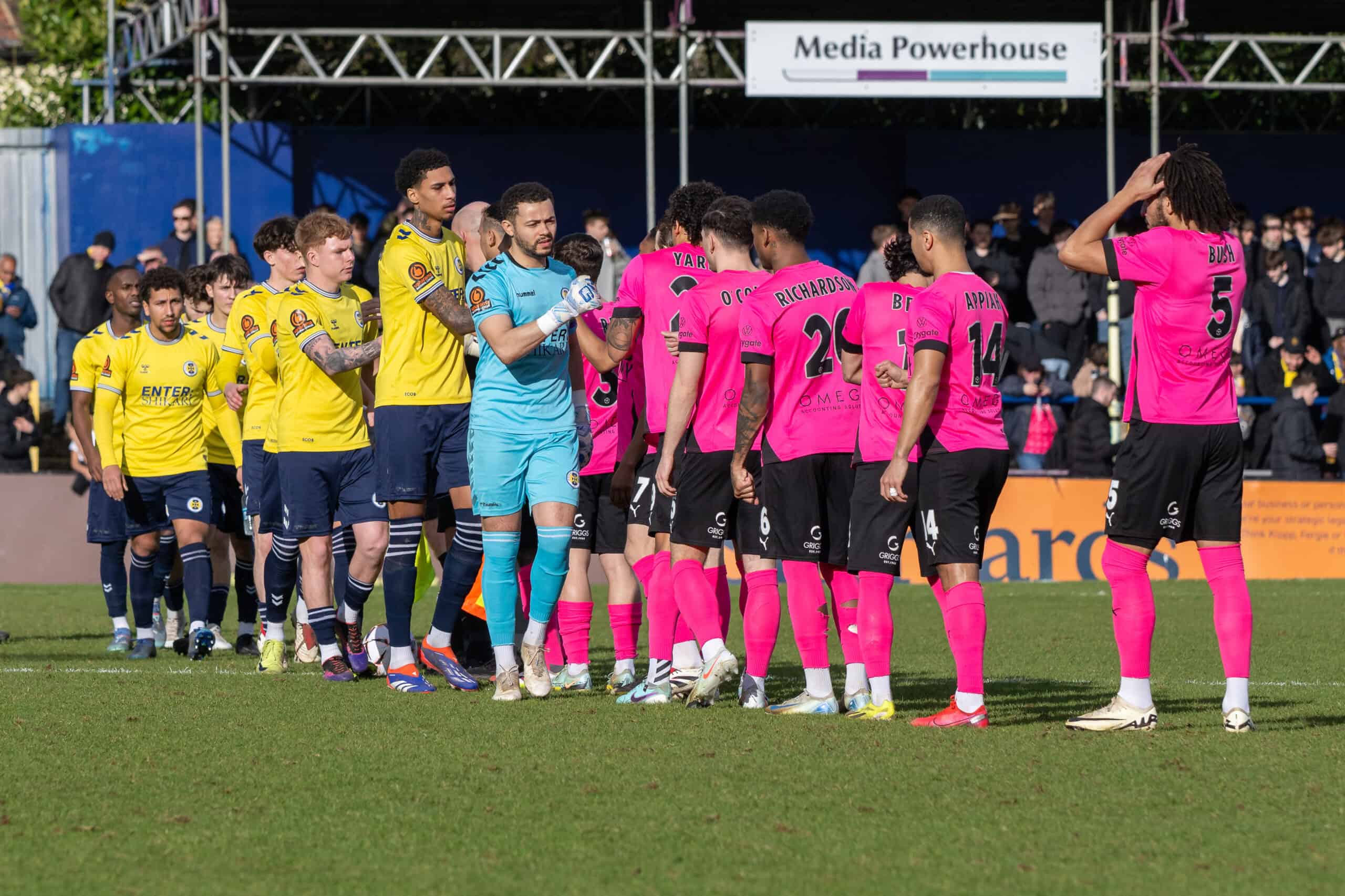 On 26 minutes, Brandon Mason went on a good run before firing narrowly wide for the hosts. A minute later, Femi Ilesanmi shot just wide for Boreham Wood. Just before the break, Wood took the lead against the run of play when a Whelan corner was spilt by Johnson in the Saints’ goal, enabling Charlie O’Connell to convert a simple tap-in at the far post.