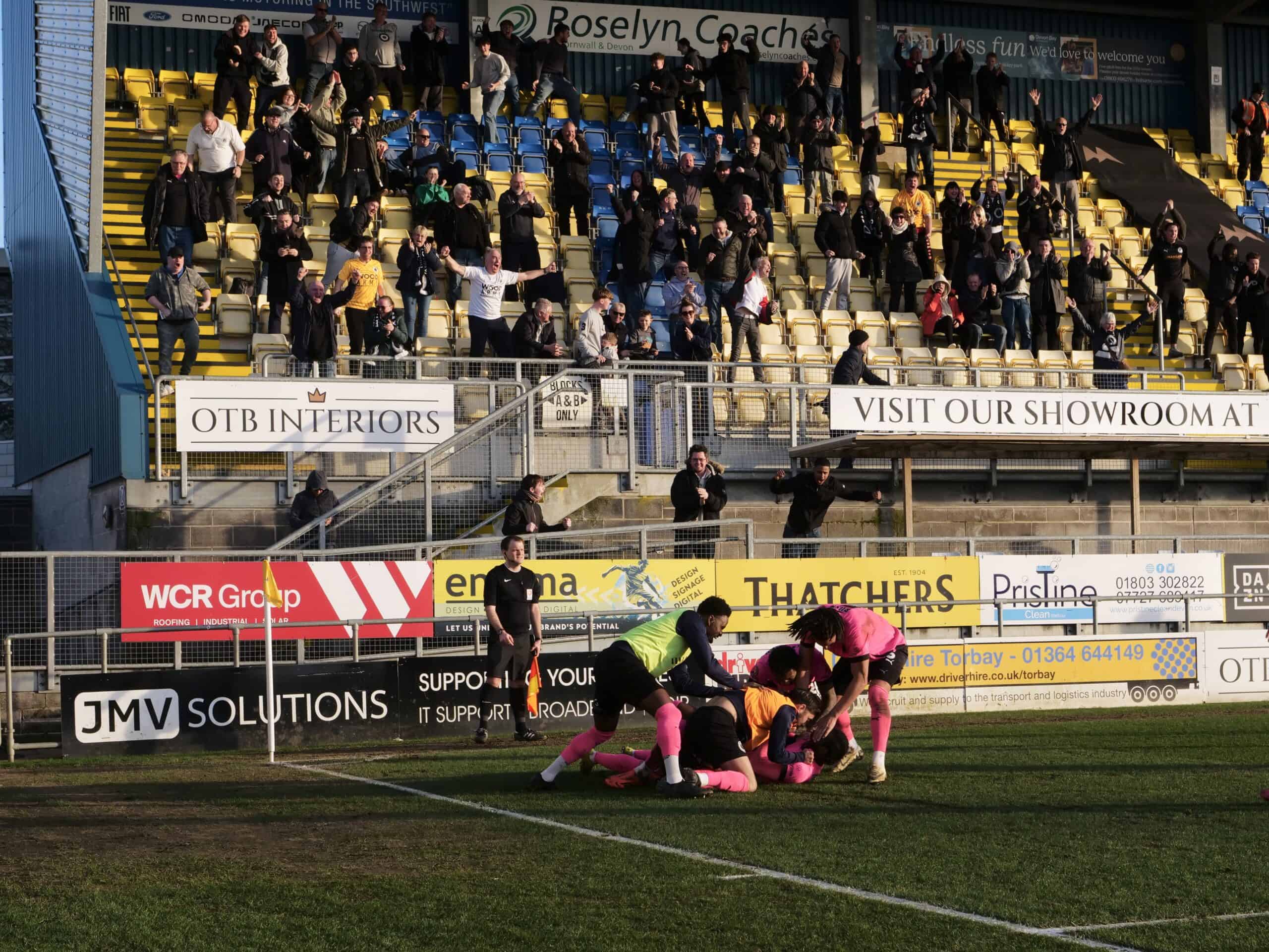 During the seven minutes of added time, Wood forced a succession of corners, and the Gulls’ defence seemed to keep them at bay. Just as the referee was looking at his watch, Abdulmalik went on a jinking run that turned the Torquay defence inside out before crossing for Dixon to fire home. The scenes of jubilation among players and supporters were incredible.