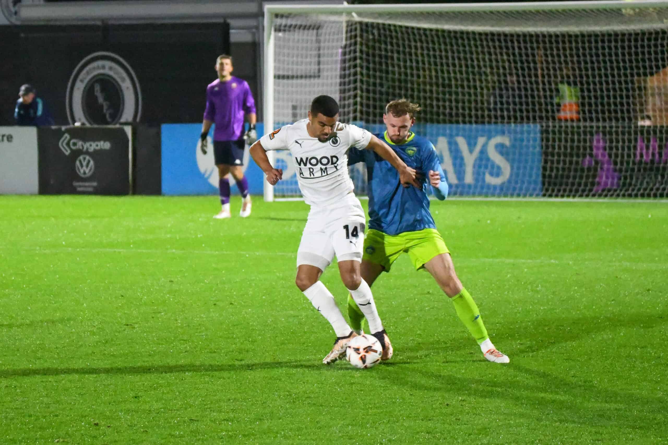 Truro City responded with some pressure of their own. In the 16th minute, Jaze Kabia launched a powerful shot from distance that seemed destined for the top corner, but Nathan Ashmore’s acrobatic save kept the score level. Moments later, Yassine En-Neyah cut inside and drilled a shot toward the bottom corner, only for Ashmore to make another impressive stop.