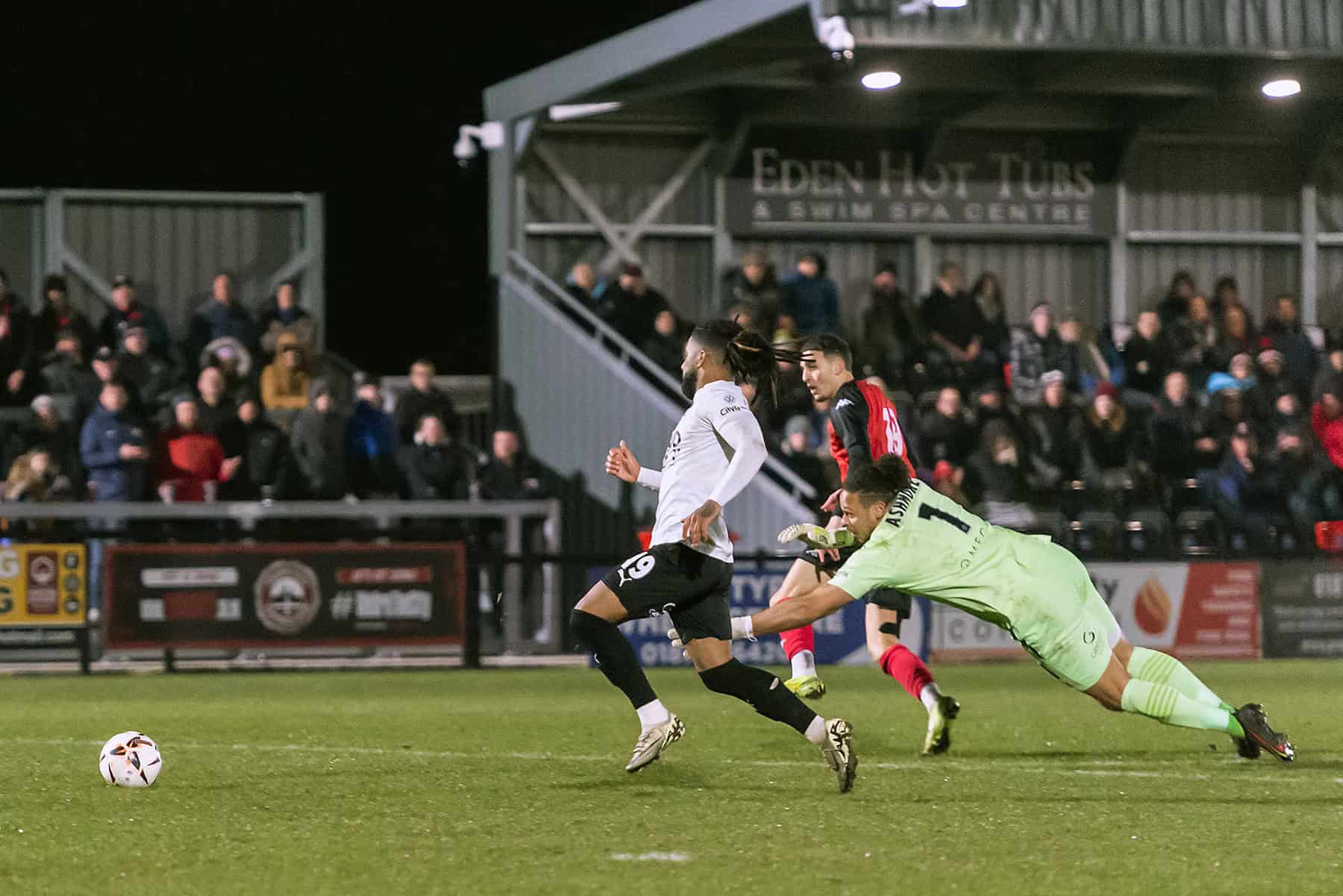The game started off in a lively fashion when there was a mix-up in the Wood defence between Nathan Ashmore and Charlie O’Connell early on, which nearly enabled Dominic Johnson-Fisher to nip in. Soon afterwards, Matt Rush had a good chance for Boreham Wood but fired straight at Tinners keeper Dan Lavercombe. On nine minutes, Connor Riley-Lowe forced Ashmore into a fantastic save from a well-struck volley.