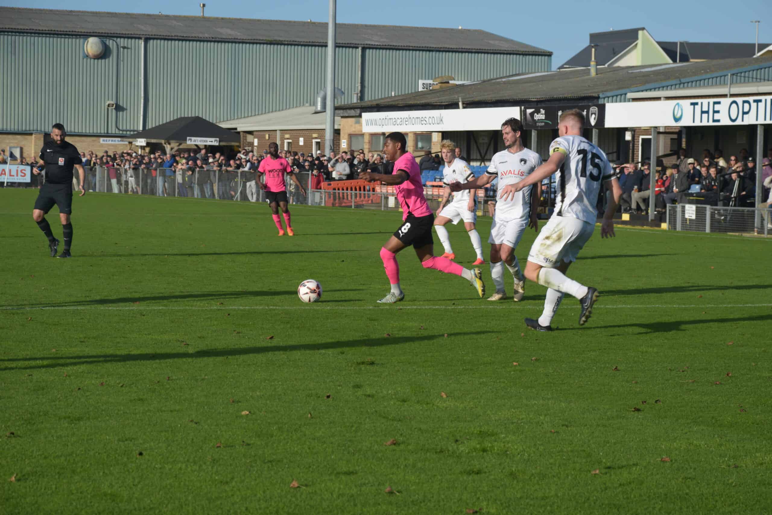 After 19 minutes, the hosts should have taken the lead when a lovely flick-on by Luke Coulson played in Sam Pearson, who screwed his shot wide. Wood went straight up the other end, and Cameron Coxe’s effort was well blocked by a Weston defender. On the half-hour mark, a Tom Whelan free kick was headed narrowly wide by O’Connell. Five minutes later, a Pearson pass picked out Jacob Cane, but he fired just wide of Nathan Ashmore’s goal.